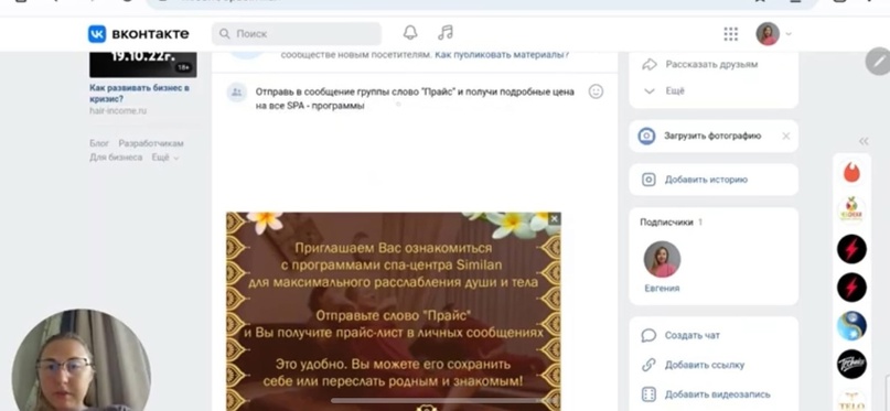 Настройка сообщества Вконтакте для СПА-салона в Большом Полпино